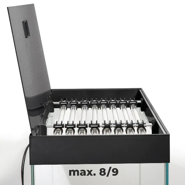 La galerie offre un accès libre et facile à l’intérieur de l’aquarium grâce au System Smart Open du couvercle ! Ce dernier comporte une ouverture sur la partie postérieure du couvercle pour l’installation des tuyaux et passage des câbles électriques. La galerie de l’aquarium AQUAEL Opti Set 125 Noir est doté d’uen finition satinée, au niveau du couvercle et du cadre inférieur.