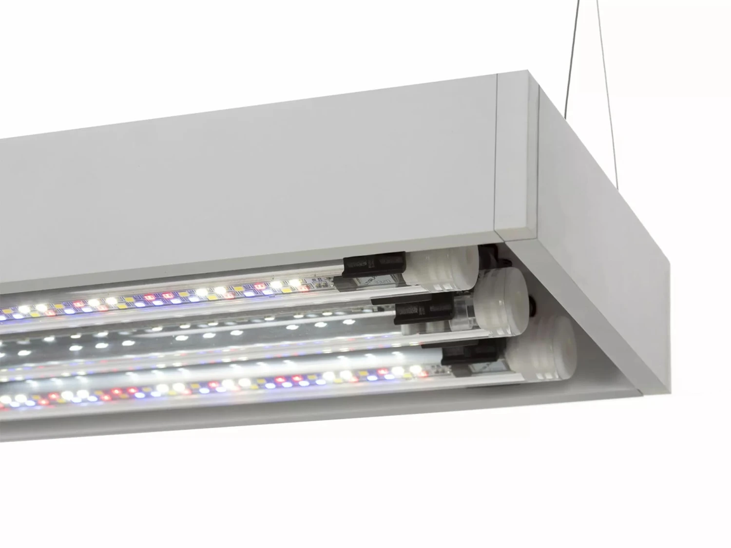 - Équipé d’un tube LEDs Sunny Day&Night 7000°K (1050 lumens) et 2 tubes LEDs Plants 9000°K (730 lumens chacun)