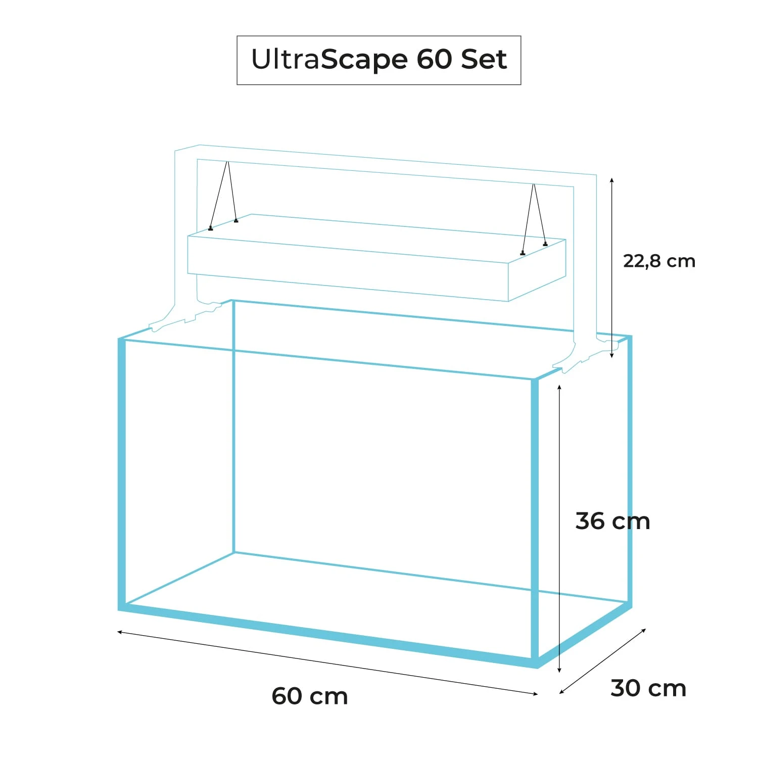 - Dimensions de l’aquarium : 60 x 30 x 36 cm