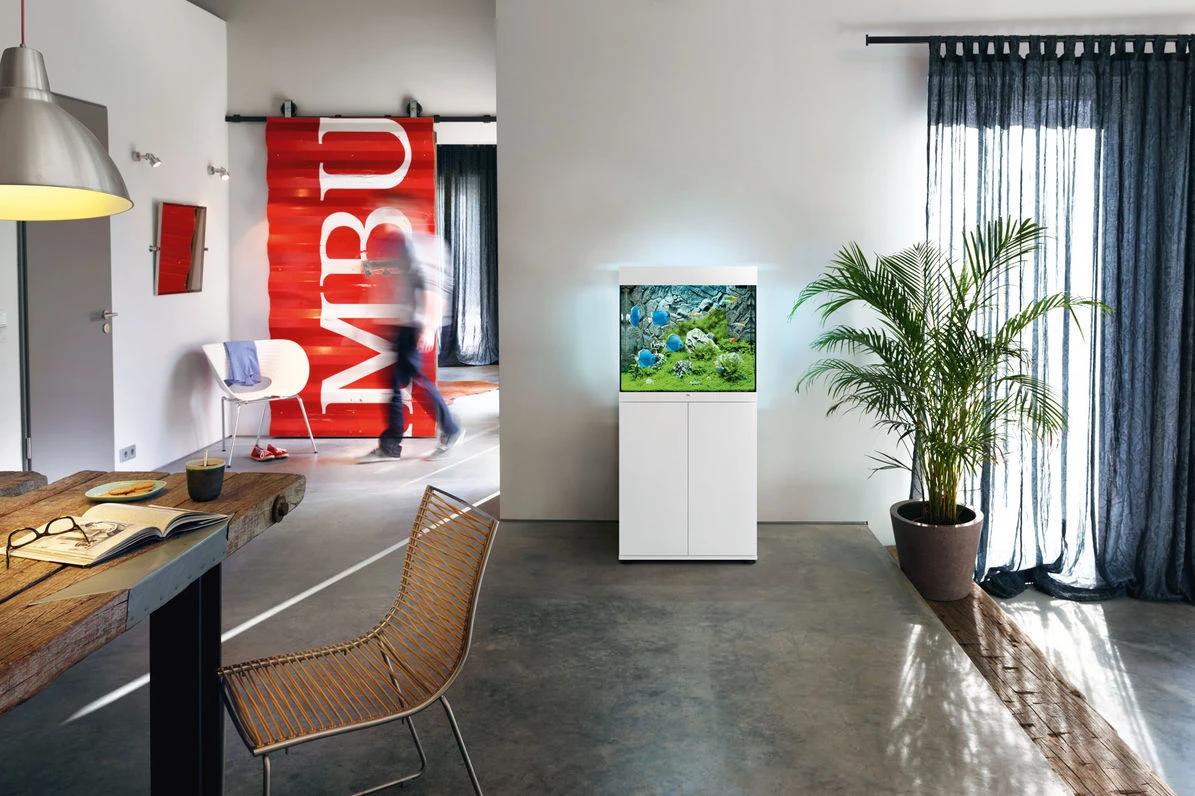 du produit « Aquarium JUWEL Lido 120 LED 61 x 41 x 58 cm 120L – Gris, Blanc, Noir ou Chêne clair, avec ou sans meuble SBX »