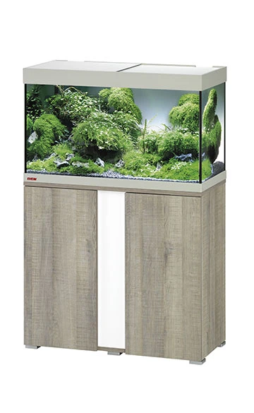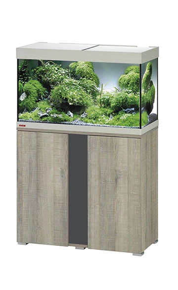 EHEIM Vivaline LED 126 L est un ensemble comprenant un aquarium de 80 cm avec meuble Chêne Gris, éclairage LEDs 1 x 13W, chauffage de 100W et filtre interne BioPower 160.