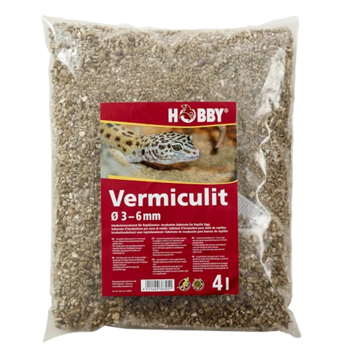 HOBBY Vermiculit 4 L granulométrie 3 à 6 mm est le substrat idéal pour l’incubation des oeufs de reptiles notamment des oeufs à coquille molle et petit oeufs. Ce matériau très léger retient beaucoup d’humidité et ne colle pas aux oeufs