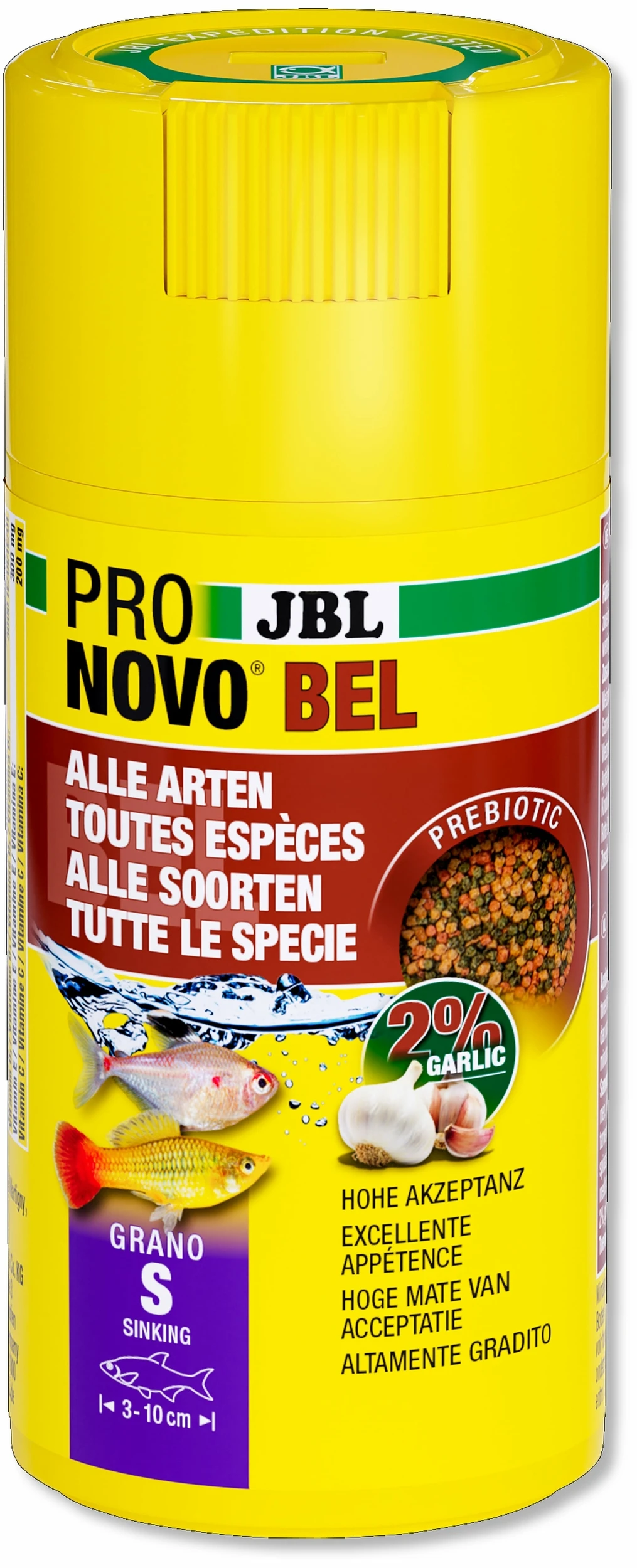 Caractéristiques du produit « JBL ProNovo Bel Grano S 100 ml Click nourriture de base en granulés pour tous poissons d’aquarium de 3 à 10 cm »