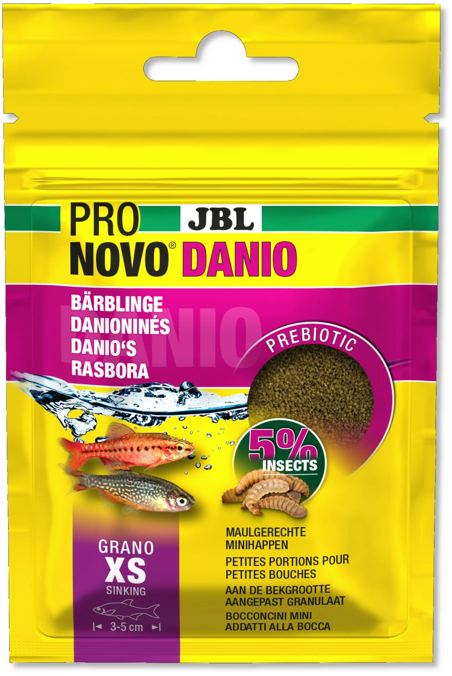 Caractéristiques du produit « JBL ProNovo Danio Grano XS 20 ml nourriture en granulés pour petits barbus et danios de 3 à 5 cm »