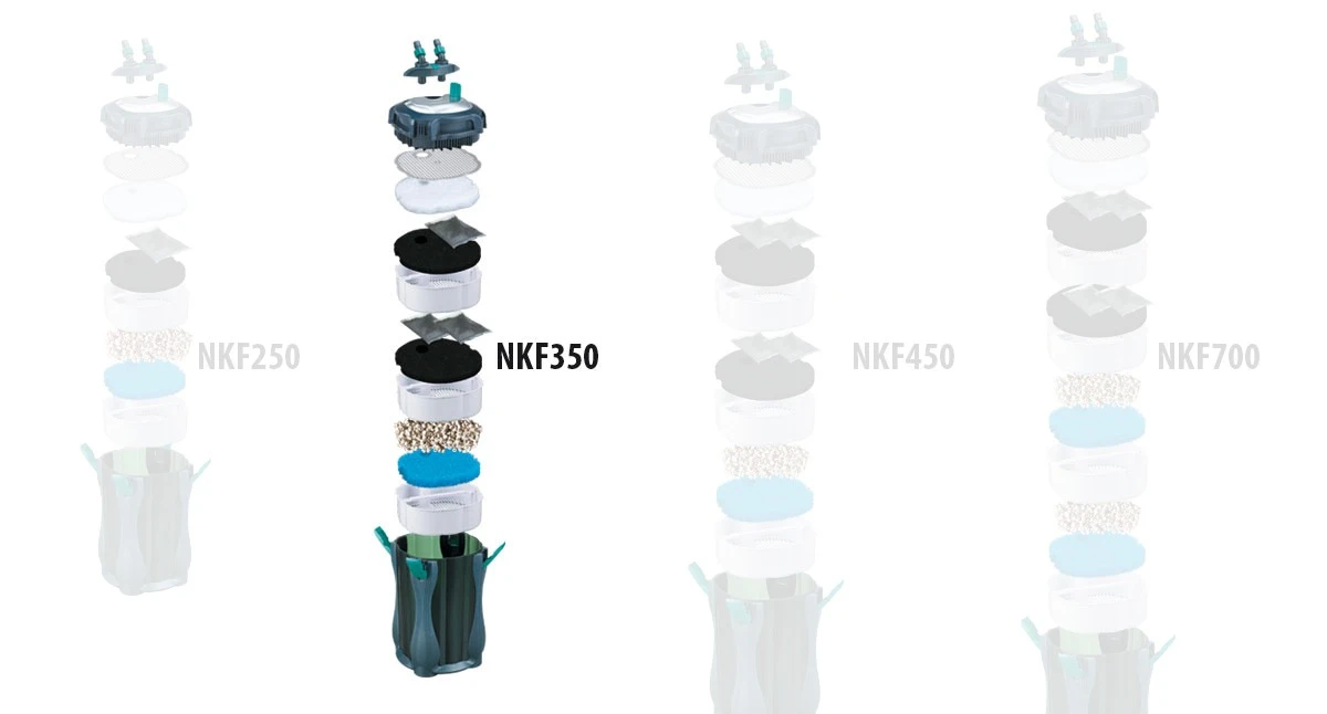 Le filtre extérieur NEWA Kanist 350 a également été optimisé pour assurer une haute efficacité de fonctionnement, avec une grande variété de possibilités qui permettent de garantir un résultat maximum au point de vu filtration mécanique, chimique et biologique. Dès la mise en marche, la pompe puissante commence à pomper l’eau dans le filtre NEWA Kanist 350 pour passer sur 6 stades de filtration. Le volume important des matériaux filtrants traitent tous les contaminants visibles et invisibles.