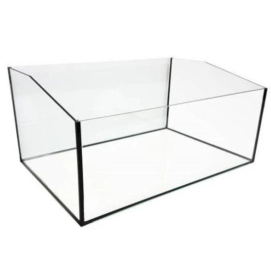 Sa grande largeur permet d’optimiser la surface de nage disponible pour la tortue, tout en minimisant l’encombrement. La qualité de transparence du verre, ses joints noir, et ses pans coupés ajoutent une touche raffinée et épurée à l’ensemble.