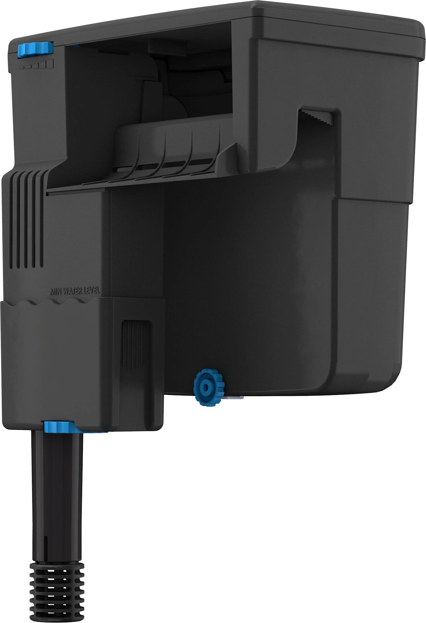 La cuve de filtration avec panier amovible a une capacité exceptionnelle d’1,2 L, au point de vous permettre d’utiliser pratiquement tous types de masse de filtrante. Le filtre est livré avec une mousse filtrante ainsi qu’un sachet de Seachem Matrix qui permet d’éliminer complètement l’ammoniac, les nitrites et les nitrates. Pratique lors du nettoyage, le panier peut s’emboiter sur la face inférieure du couvercle pour servir de plateau et éviter toute chute d’eau pendant son déplacement vers votre évier. Ce dernier comporte des fentes d’aération pour assurer en même temps un excellent échange gazeux pendant la filtration.