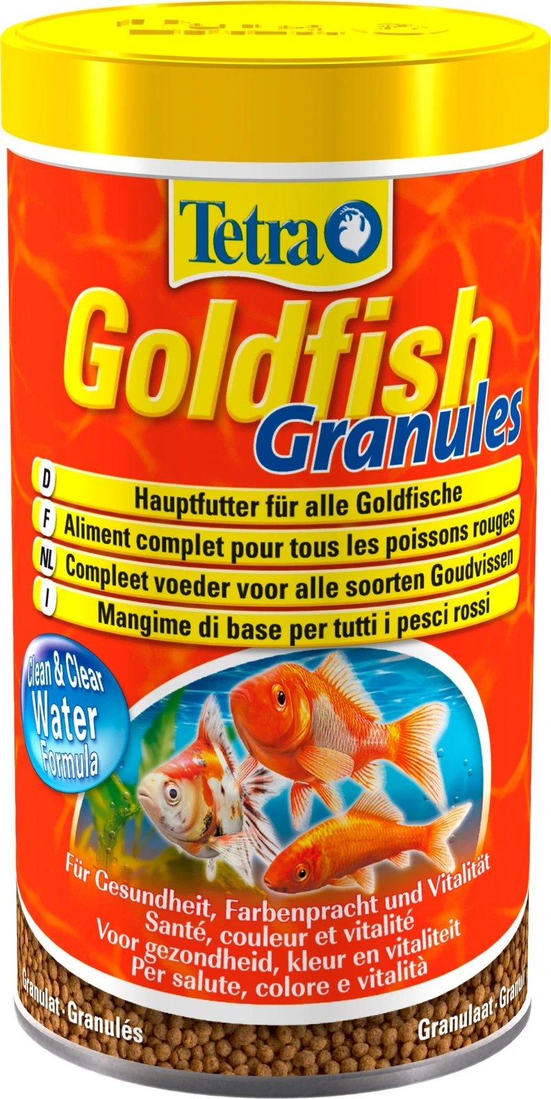 TETRA GoldFish Granules 500 ml est unaliment complet en granulés flottants pour tous les poissons rouges et autres poissons d’eau froide.