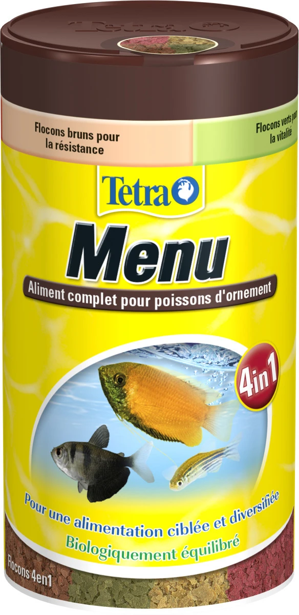 du produit « TETRA Menu 100 ml 4 nourritures en flocons dans une seule boite pour tous poissons »
