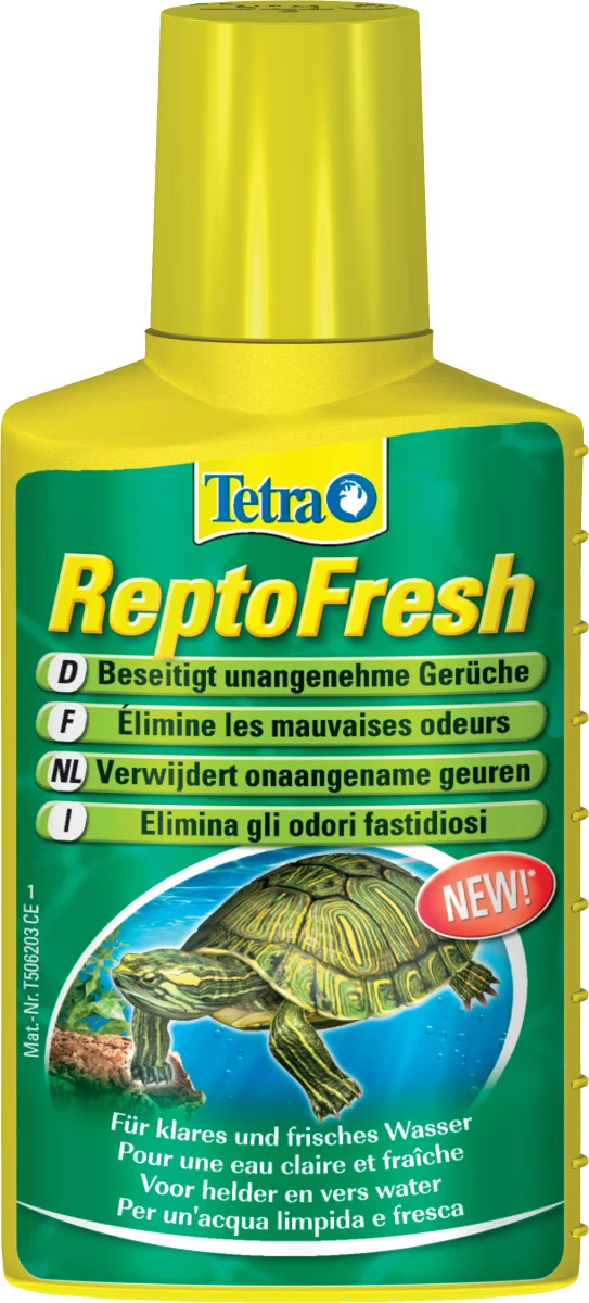 TETRA ReptoFresh 100 ml est un produit de traitement de l’eau anti-odeurs et clarificateur pour aquaterrarium. Les Tortues d’eau sont très pollueuses et souvent, même avec un filtre puissant, une odeur désagréables se fait sentir. En plus de se phénomène, ont peut constater un trouble dans l’eau.