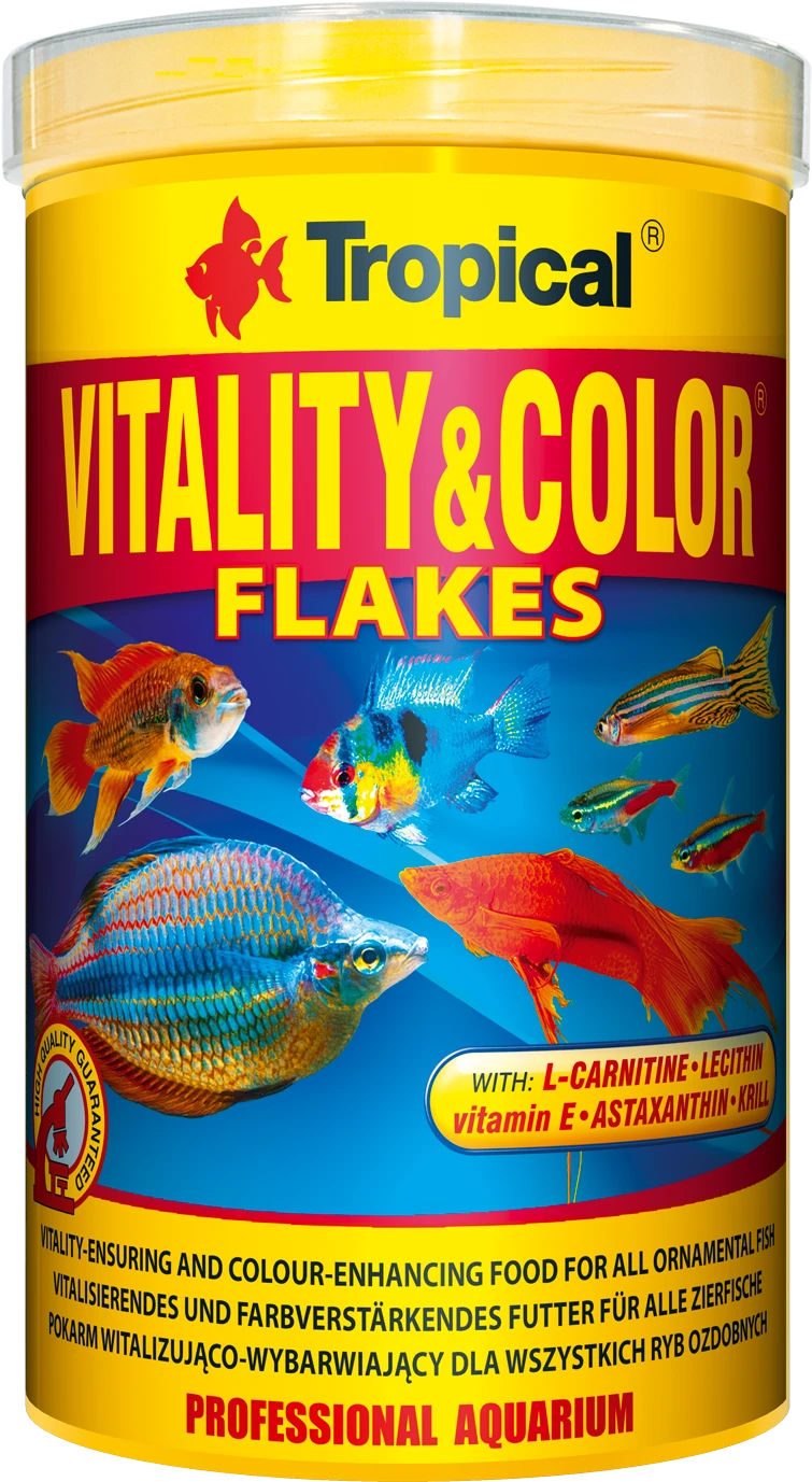TROPICAL Vitality & Color 250ml est une nourriture en flocons, riche en protéines, rehaussant la couleur, avec astaxanthine.